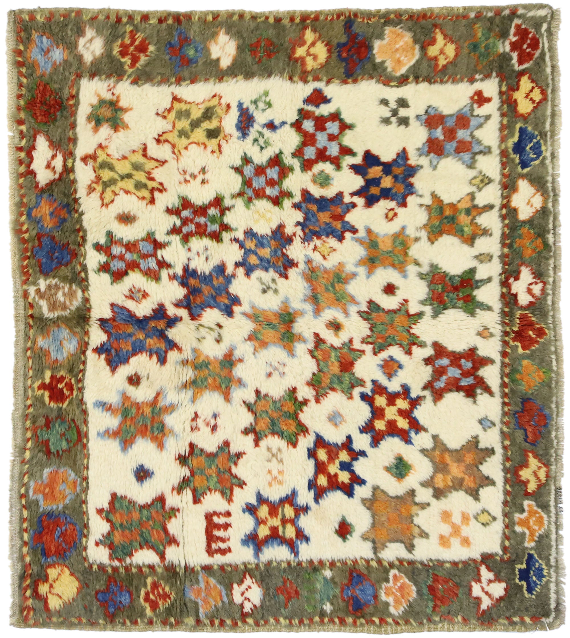 vintage Turkish Oushak rug with Boho Tribal Style features a poly-chromatic