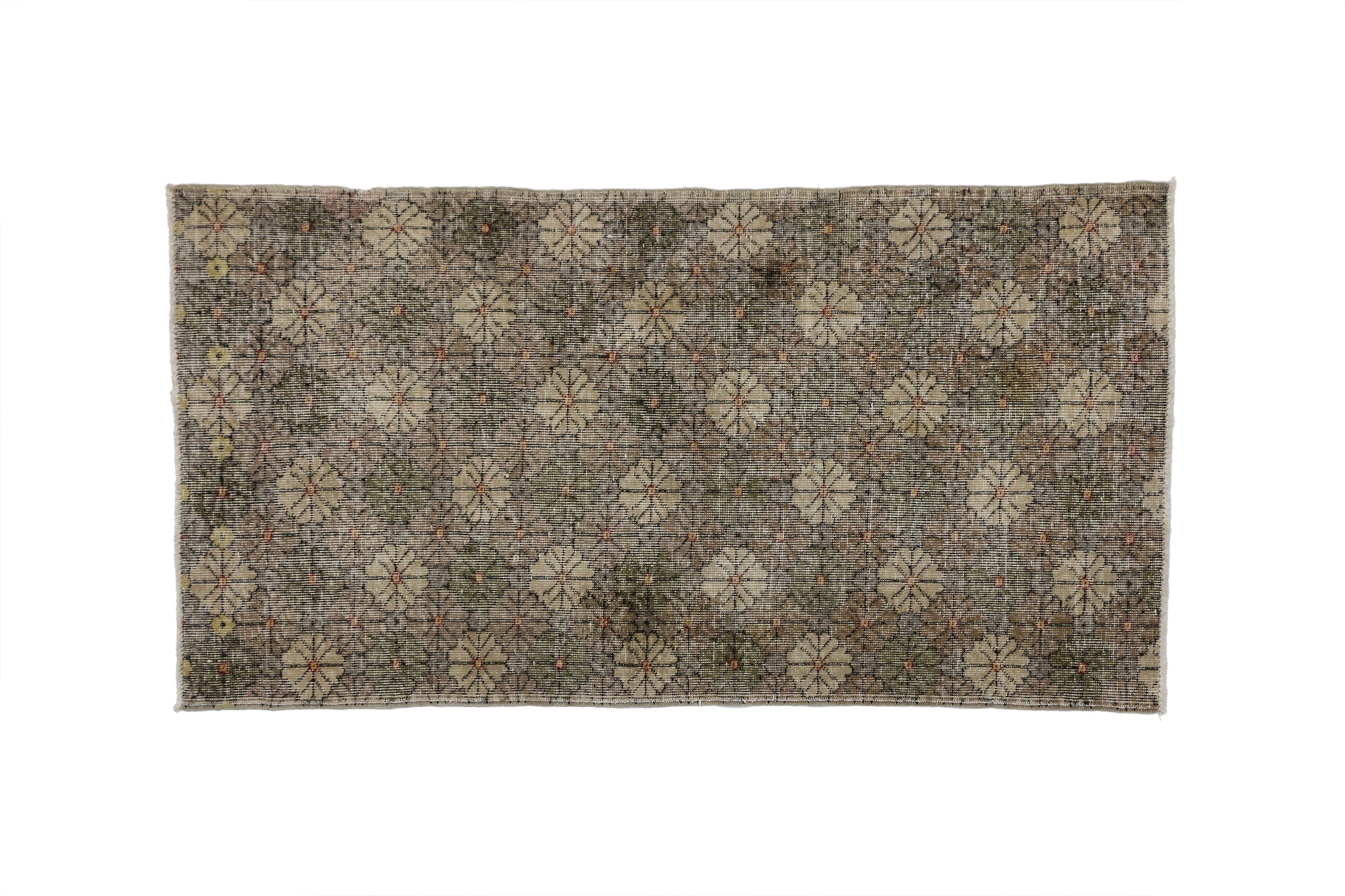 allover floral pattern in time-softened earth tones. With its well-defined