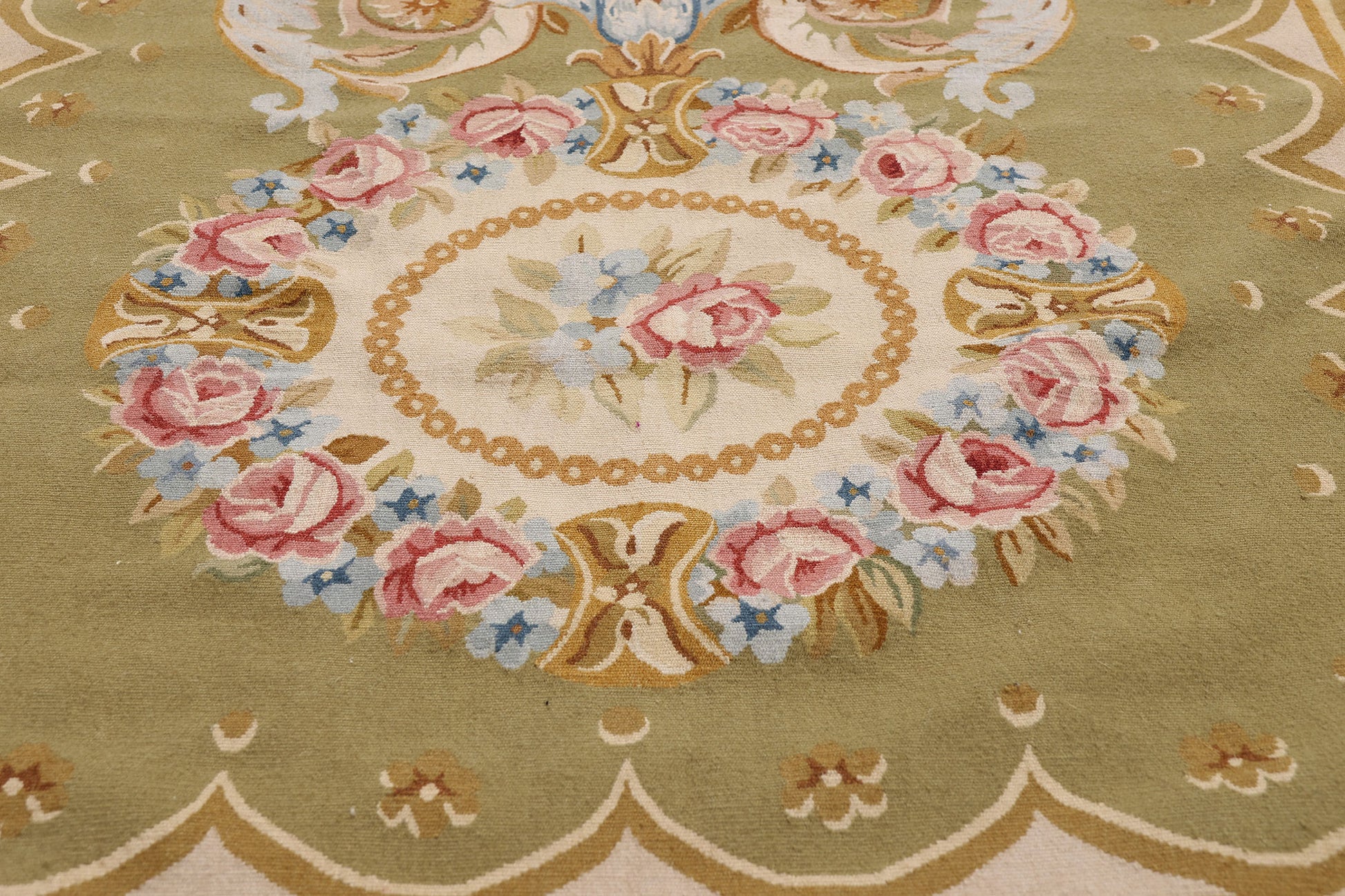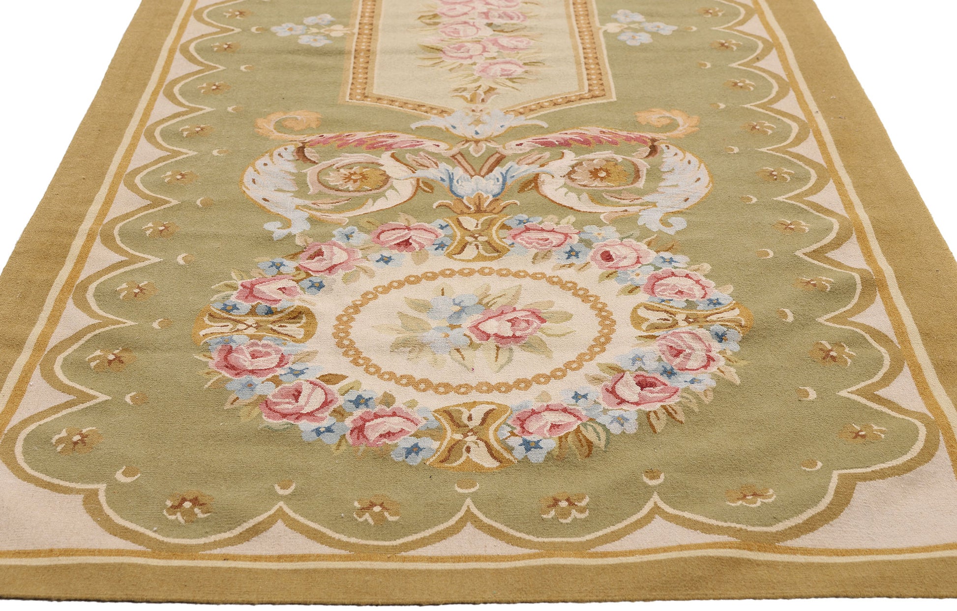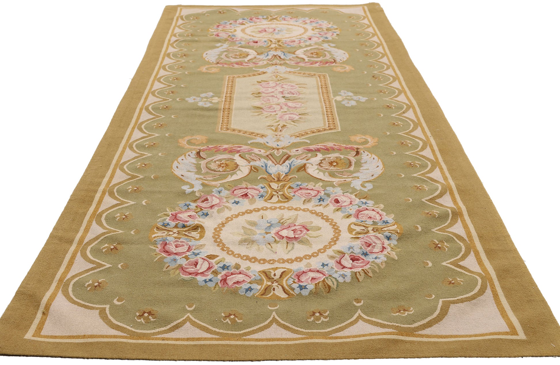 3 x 9 - Green Vintage Aubusson Rug - 79483
