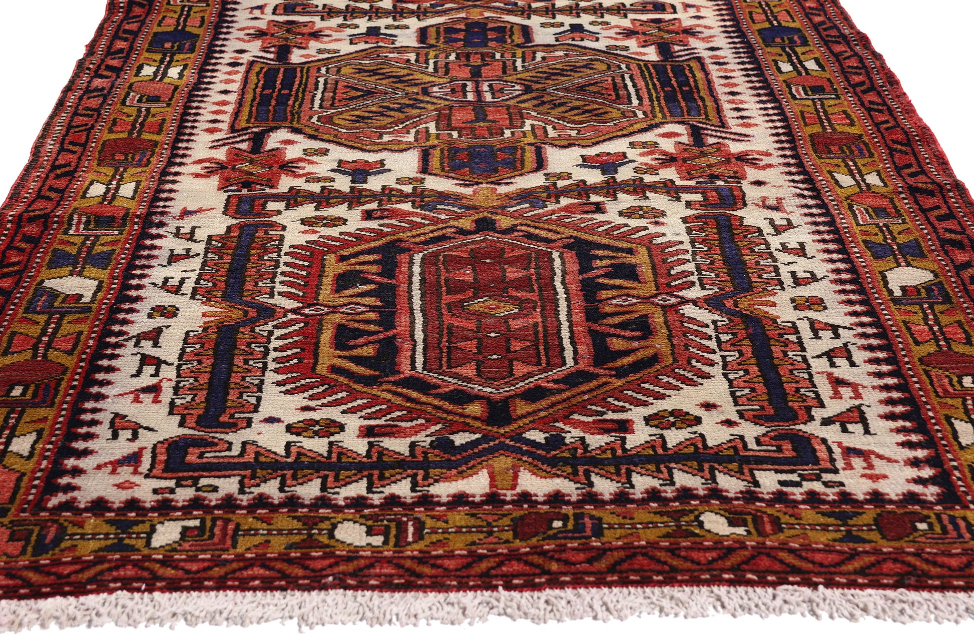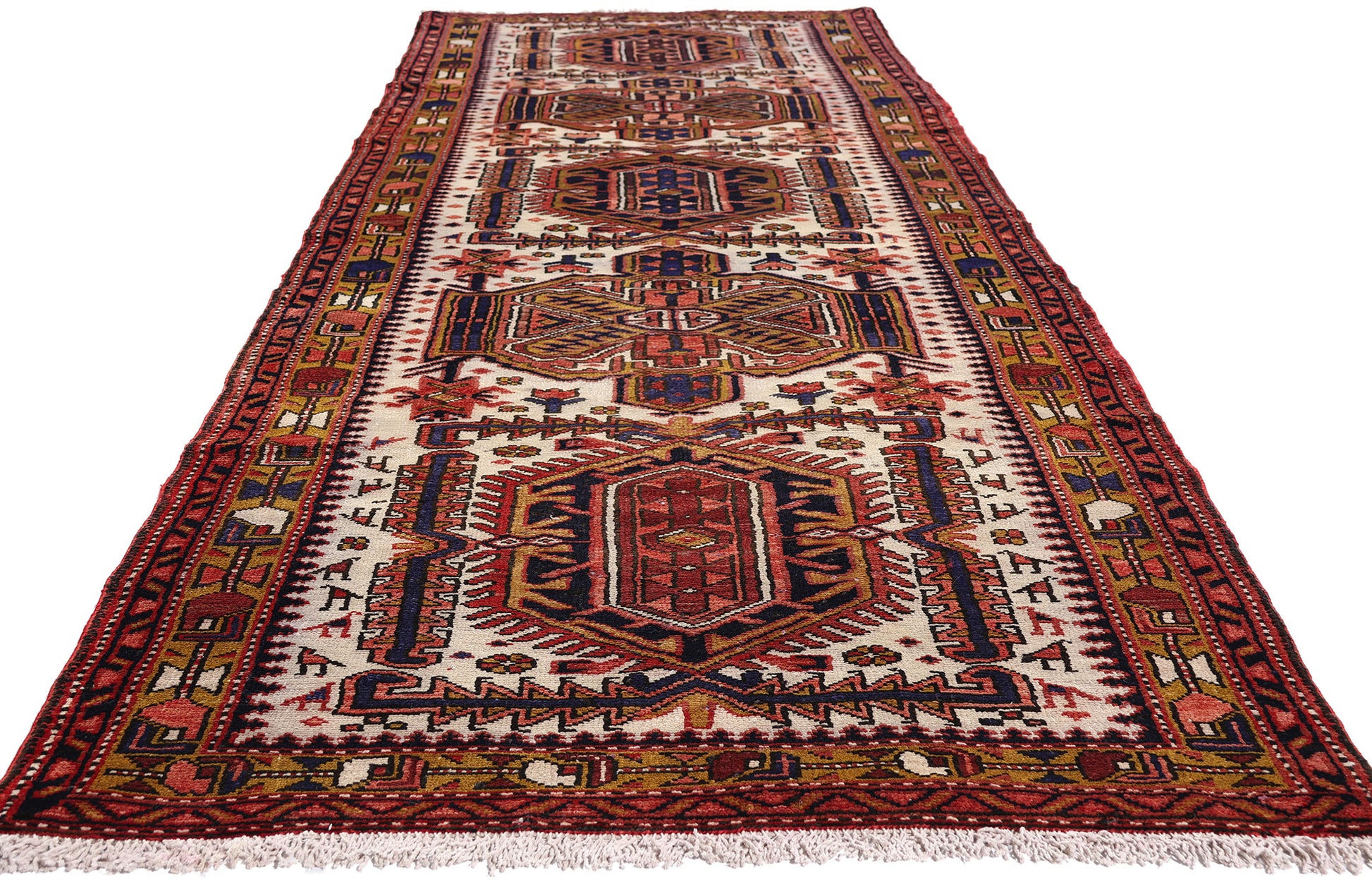 4 x 11 - Ivory Vintage Heriz Rug - 61500