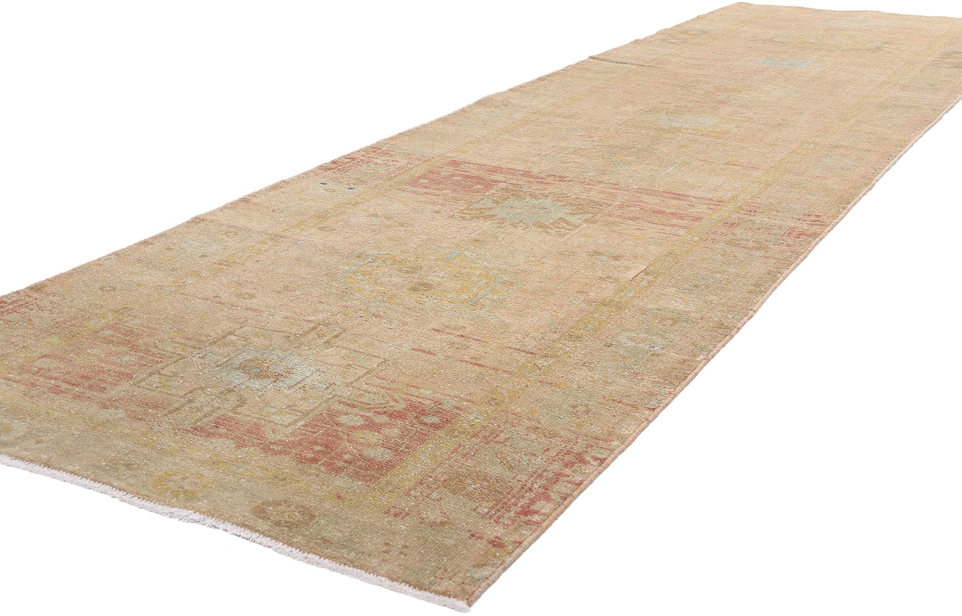 61349 Distressed Antique Earth-Tone Persian Northwest Rug Runner, 03'10 x 14'00.