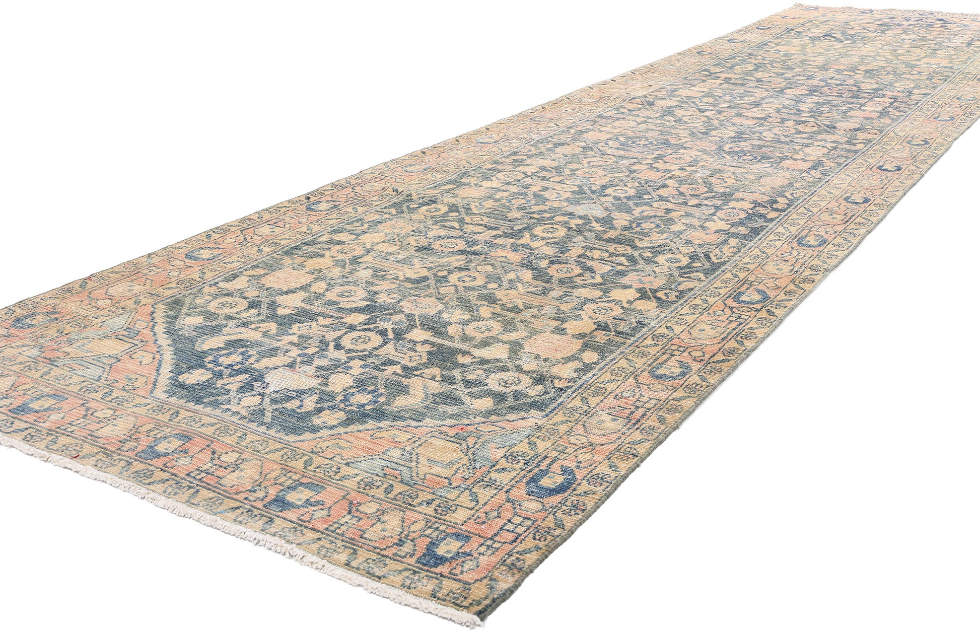 61330 Distressed Antique Persian Hussainabad Hamadan Rug Runner, 04'00 x 16'07.