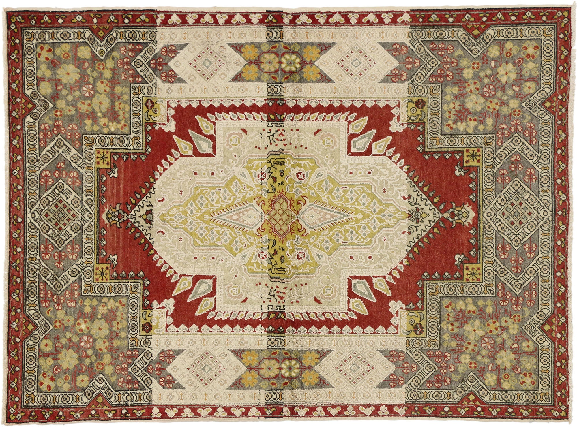 colors, this vintage Oushak rug combines simplicity with sophistication.