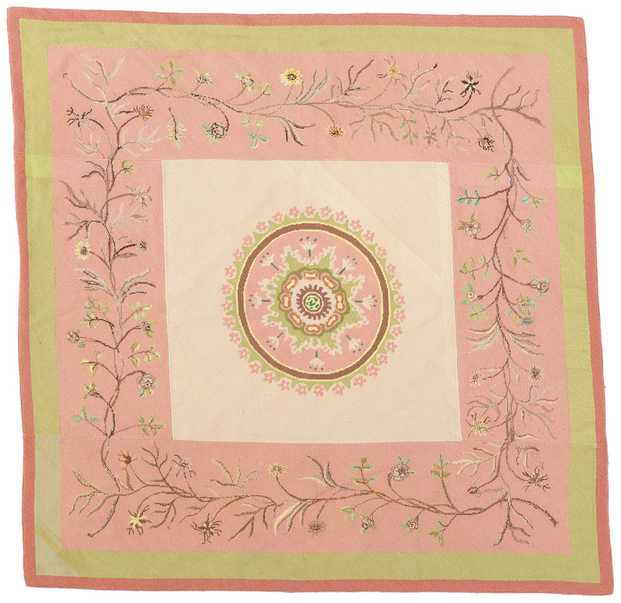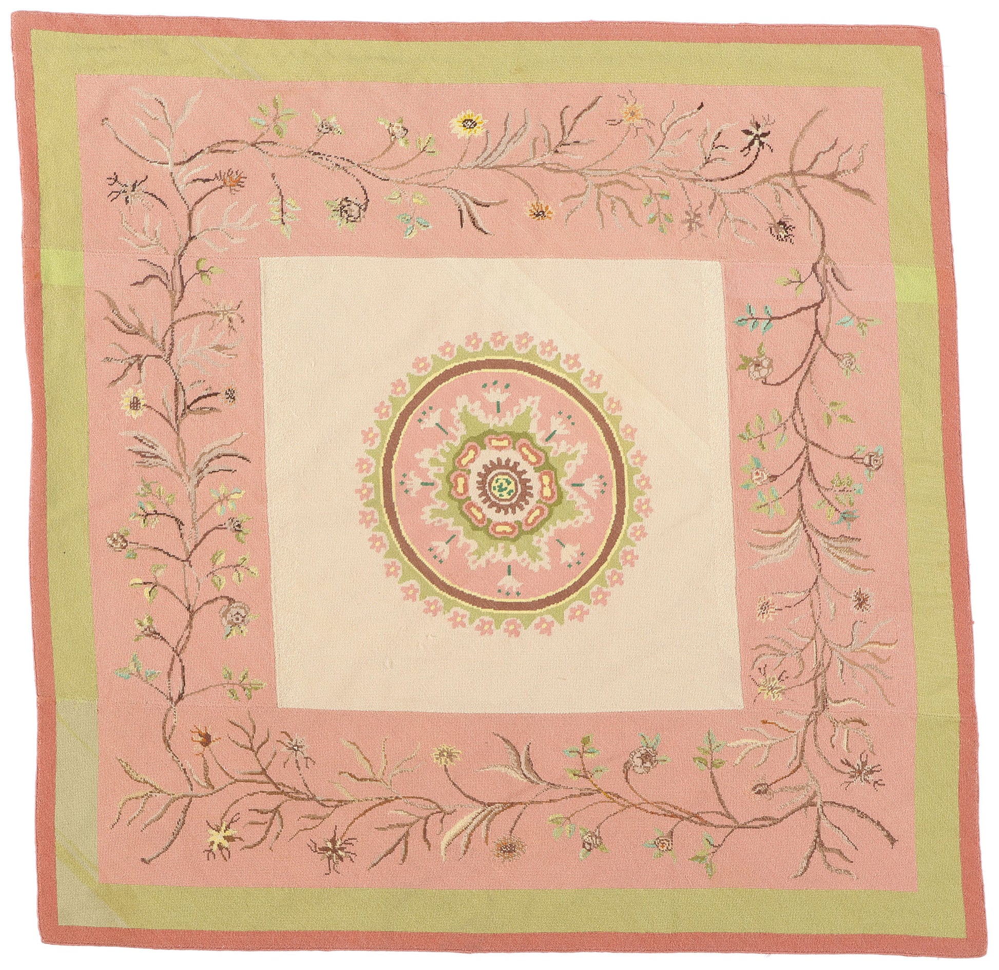 5 x 5 Vintage Portuguese Needlepoint Arraiolos Rug 78976
