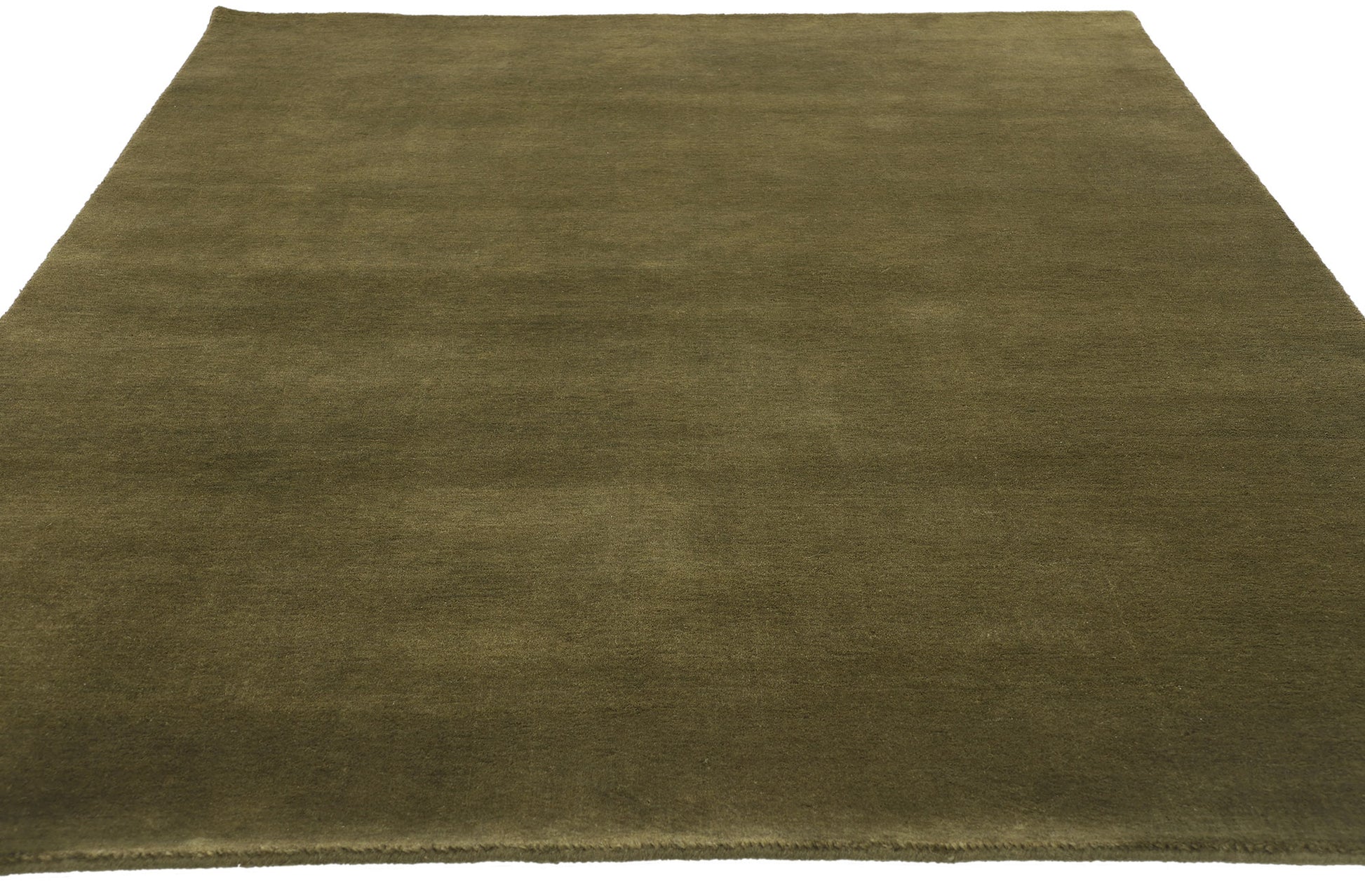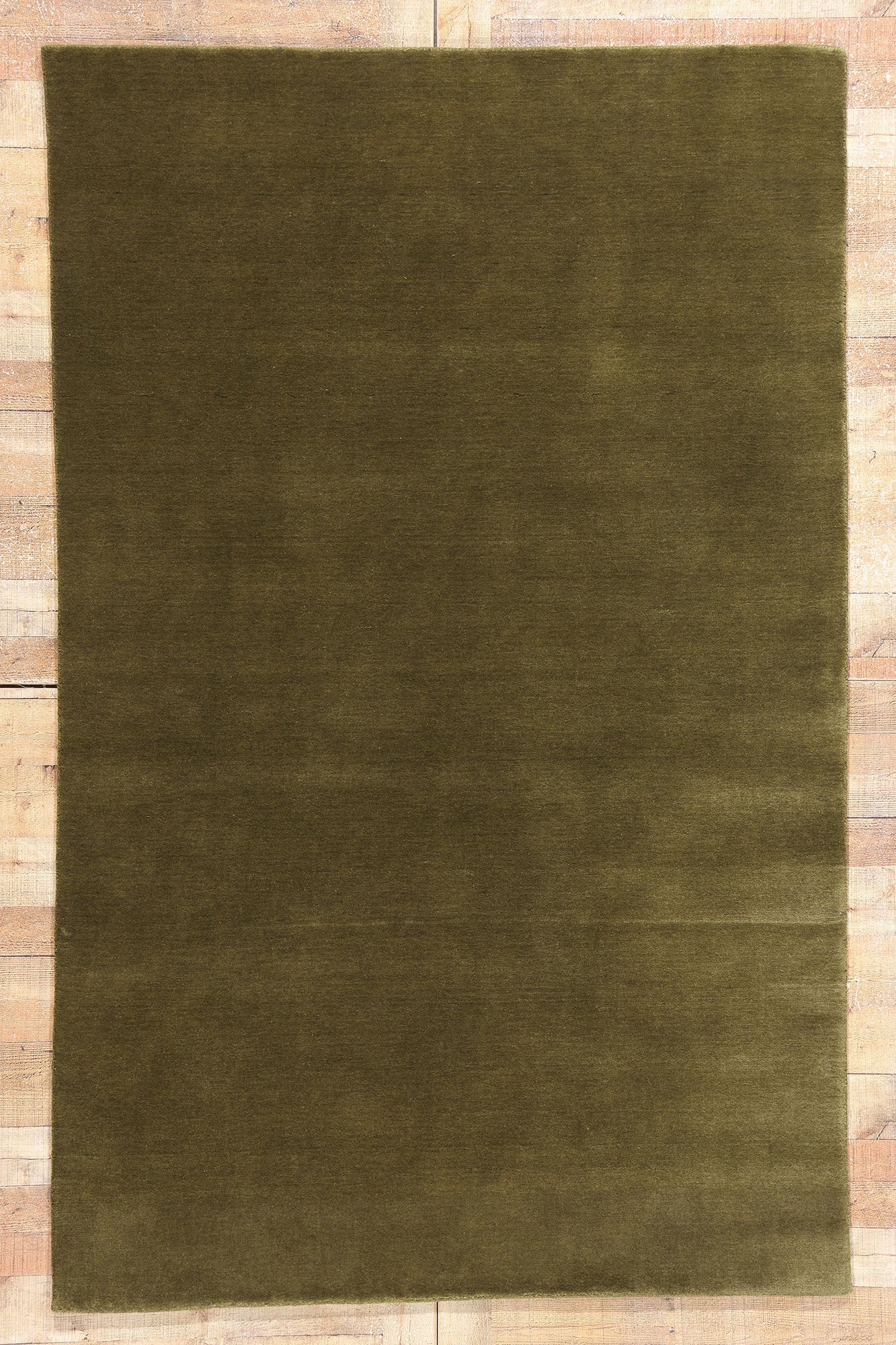 31174 New Solid Olive Green Modern Rug, 05'01 x 07'11.