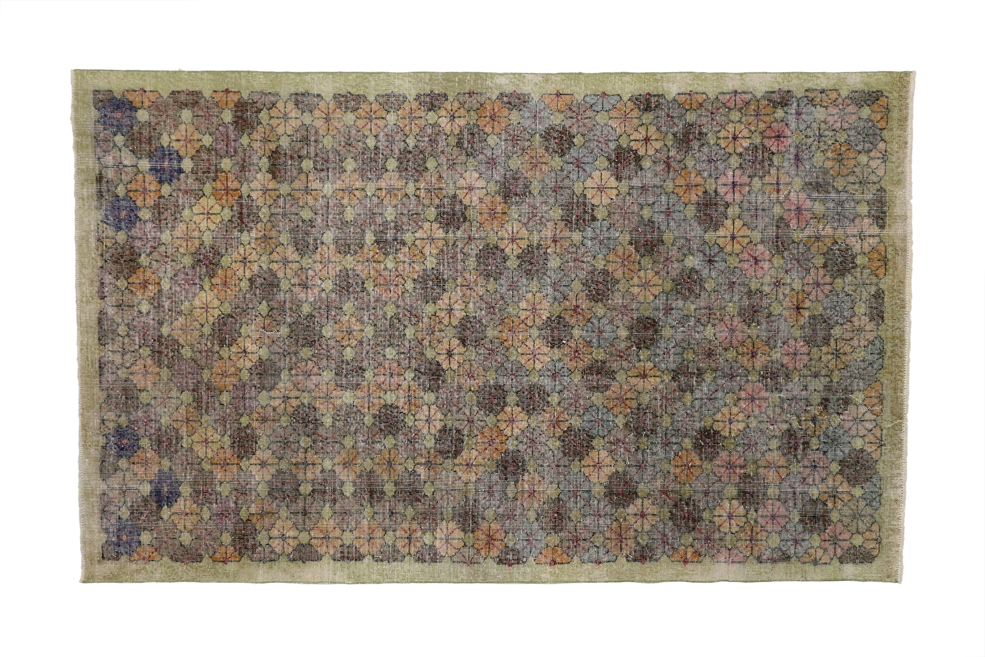 Industrial Art Deco style, this distressed vintage Turkish Sivas rug is easy to