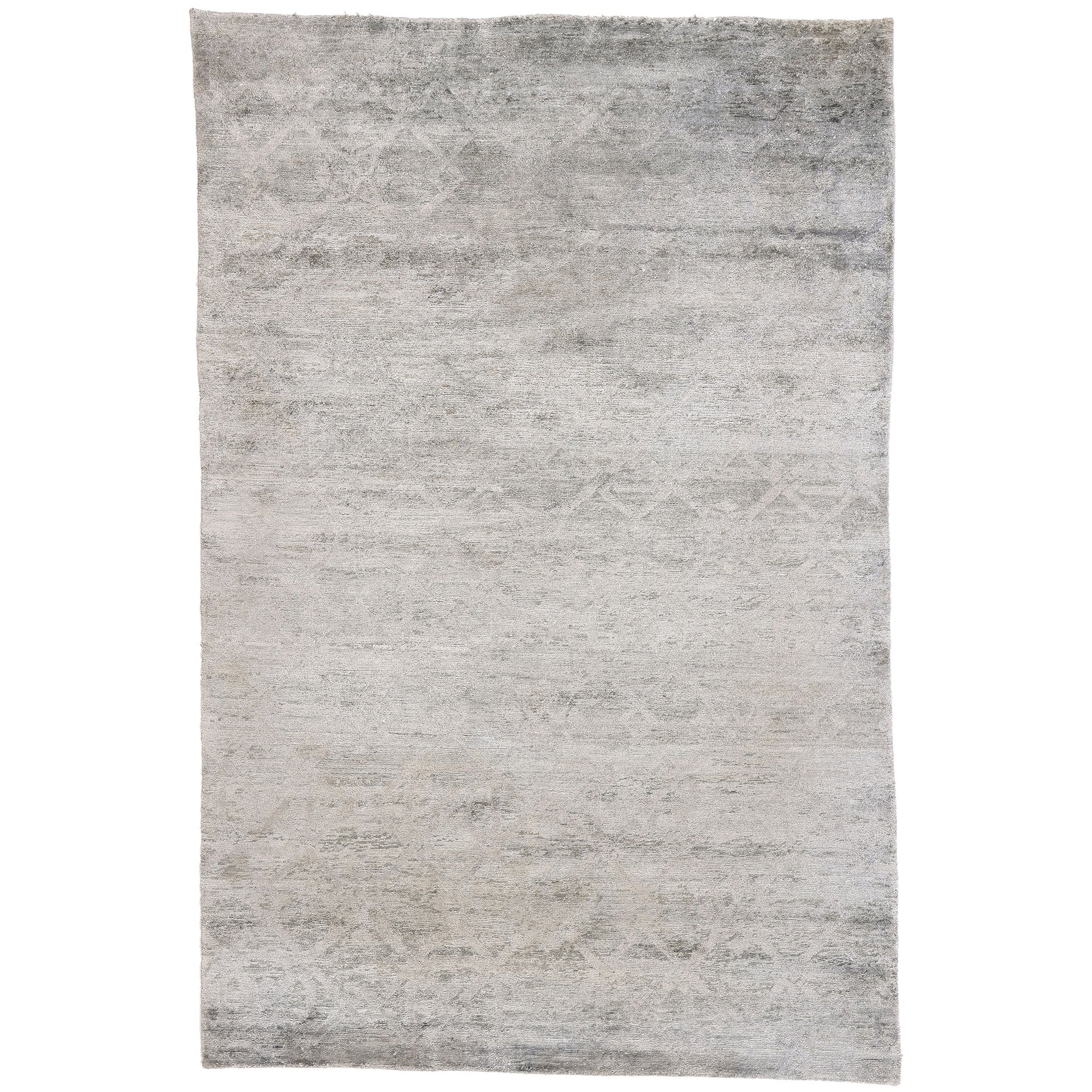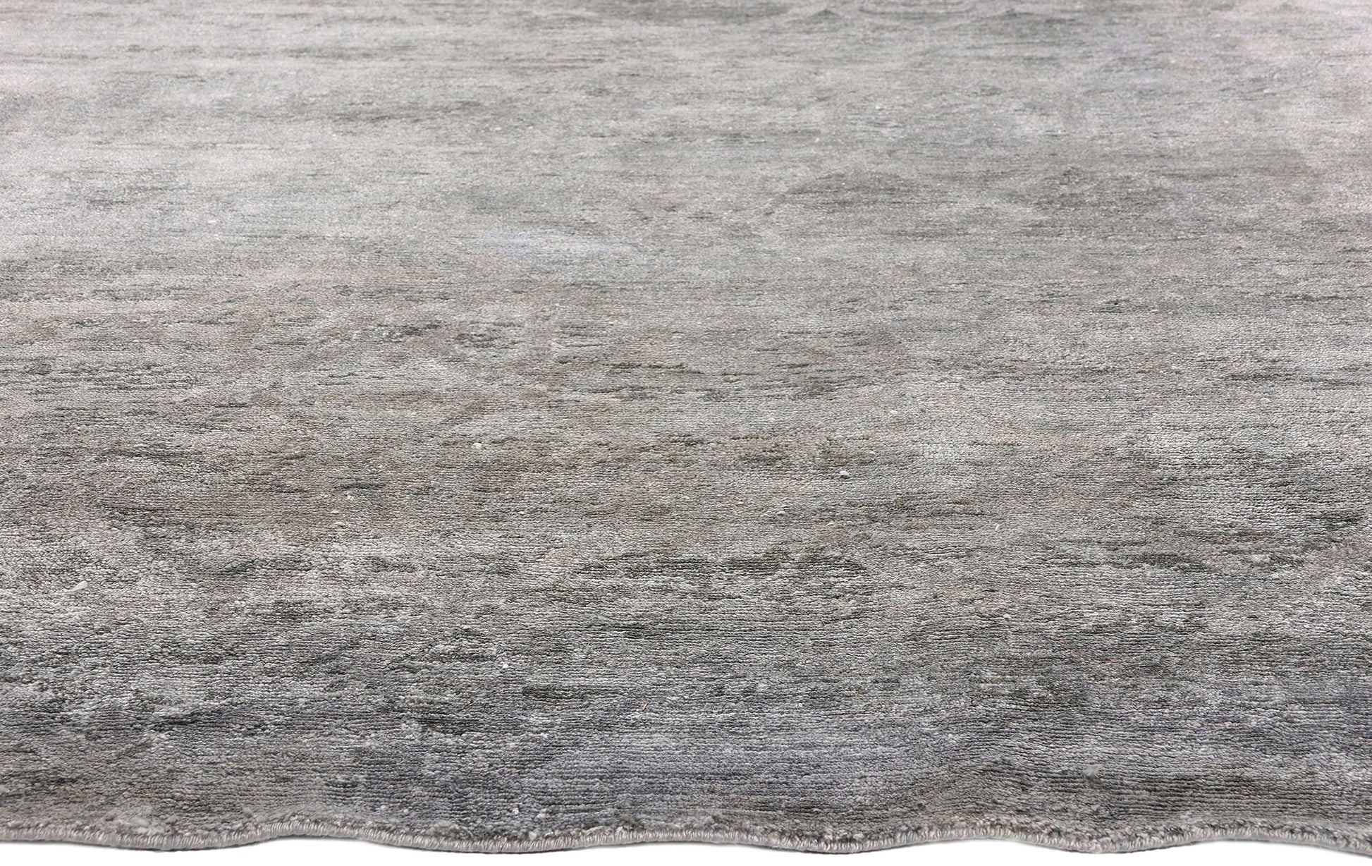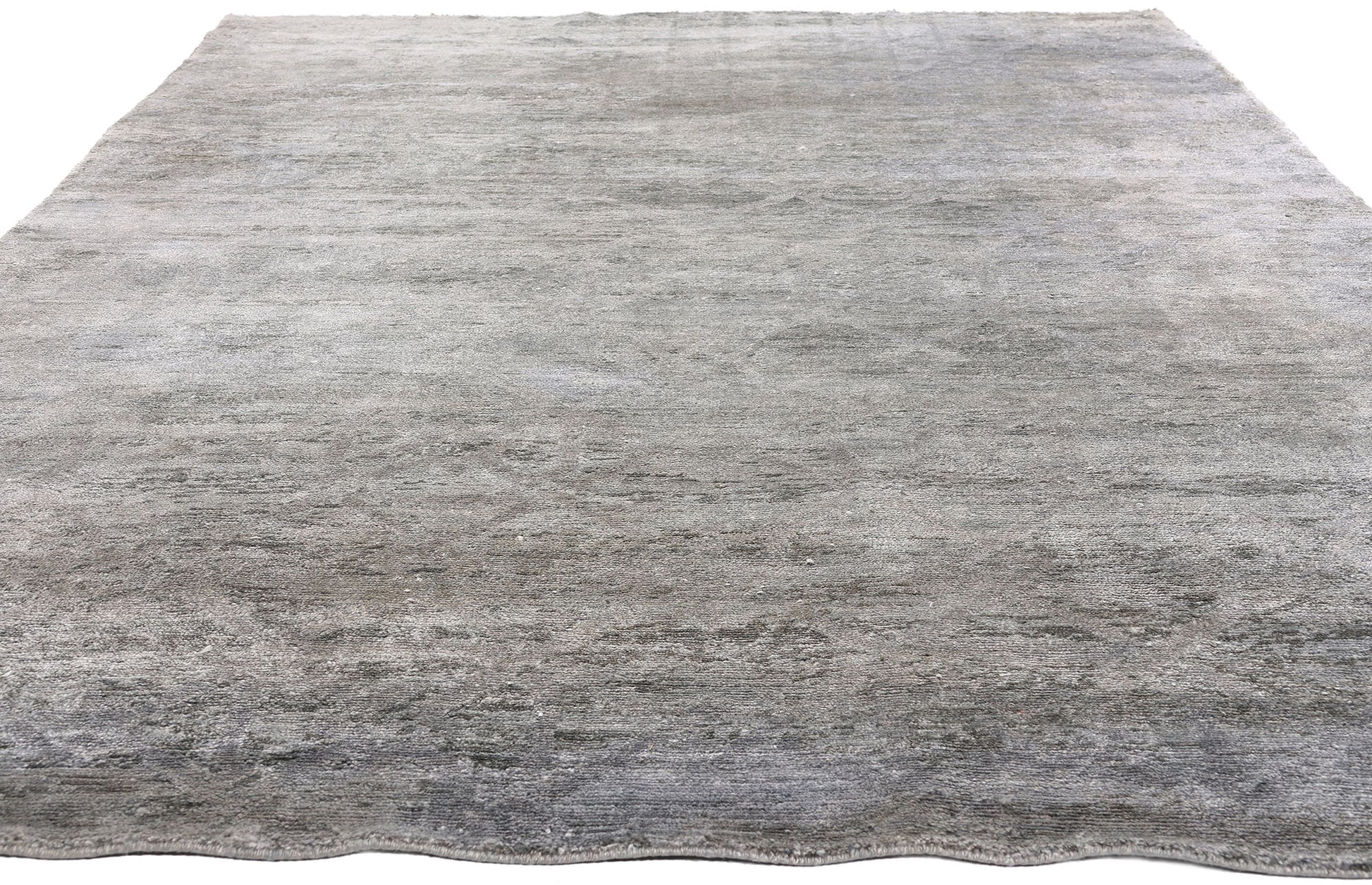 A sophisticated monochromatic palette unfolds across the field, animated by delicate waves of abrash that lend depth and visual rhythm. These tonal variations create the impression of shifting light across stone or silk, transforming simplicity into a richly layered experience. The abrash is not decorative excess but a mark of authenticity—evidence of handcraft and material integrity.