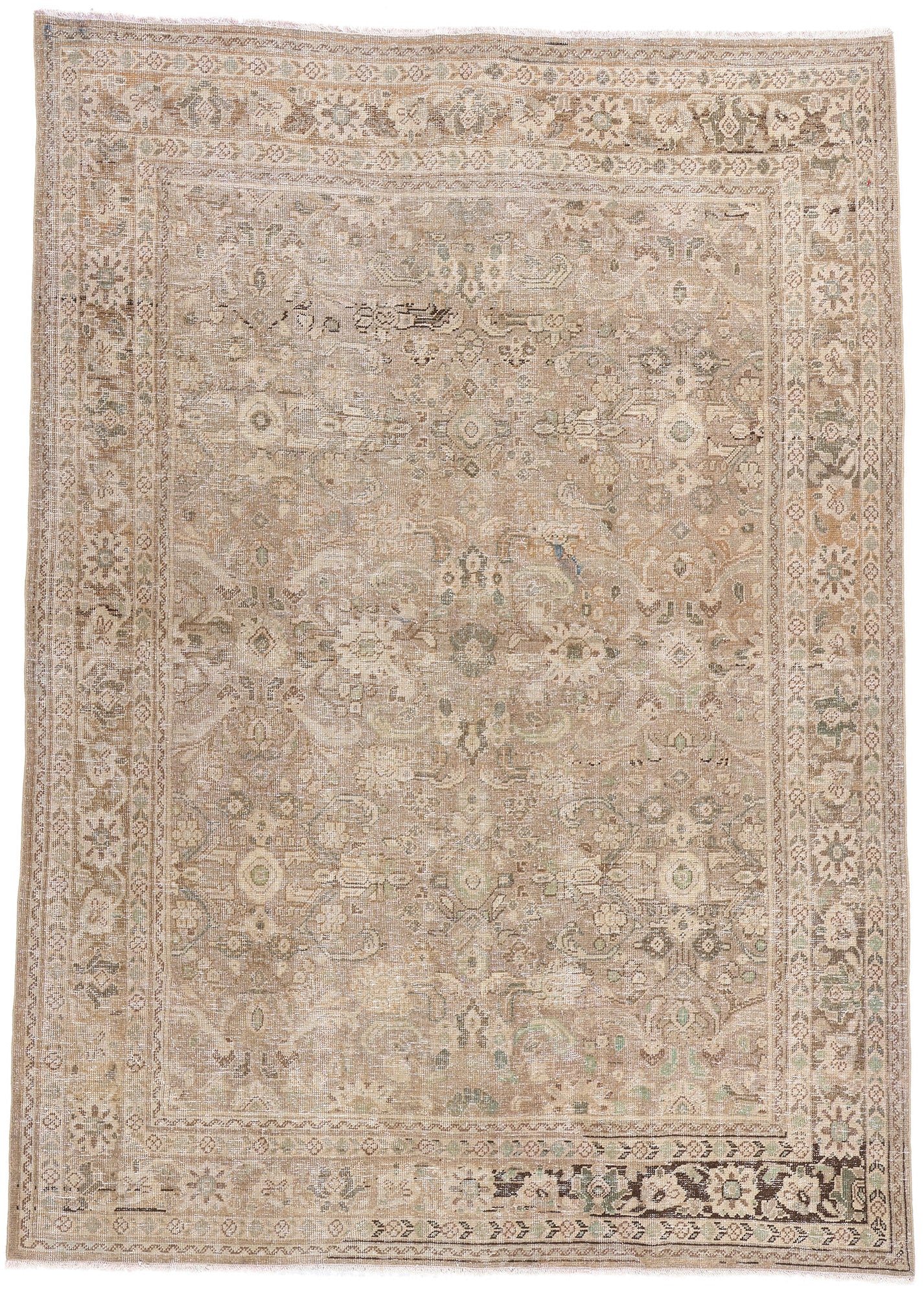 The Persian rug’s weathered beauty and laid-back luxury make it an ideal choice for contemporary spaces with a rustic or modern aesthetic. Its neutral tones and quiet sophistication can harmonize with a variety of design styles, from minimalist to boho chic, providing a grounding element that enhances the warmth and character of any room. This Persian Mahal rug is not merely a decorative piece but a celebration of heritage, artistry, and the enduring appeal of nature-inspired design.