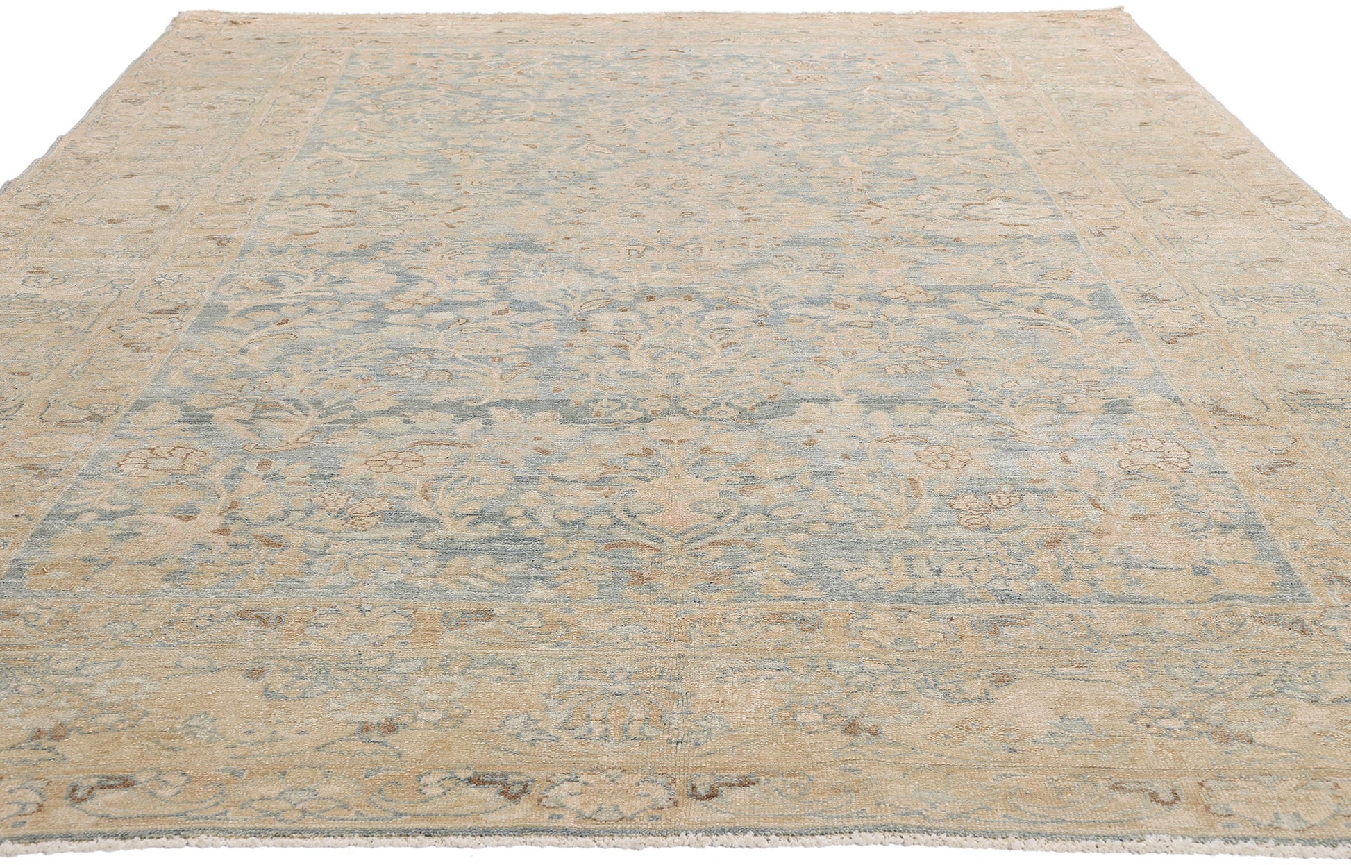 Woven in the twilight of the 19th century and steeped in the quiet grandeur of Persia’s village tradition, this hand knotted wool Malayer rug is not merely a floor covering—it is a portal to a more refined, storied world. With its ethereal, antique-washed blue field and dreamlike patina, this rarefied textile evokes the faded opulence of a forgotten Persian garden, its hues softened like ancient poetry whispered through time. This piece is a masterclass in quiet luxury—its allure not in ostentation, but in cultivated restraint. It was not made for the marketplace, but for legacy.