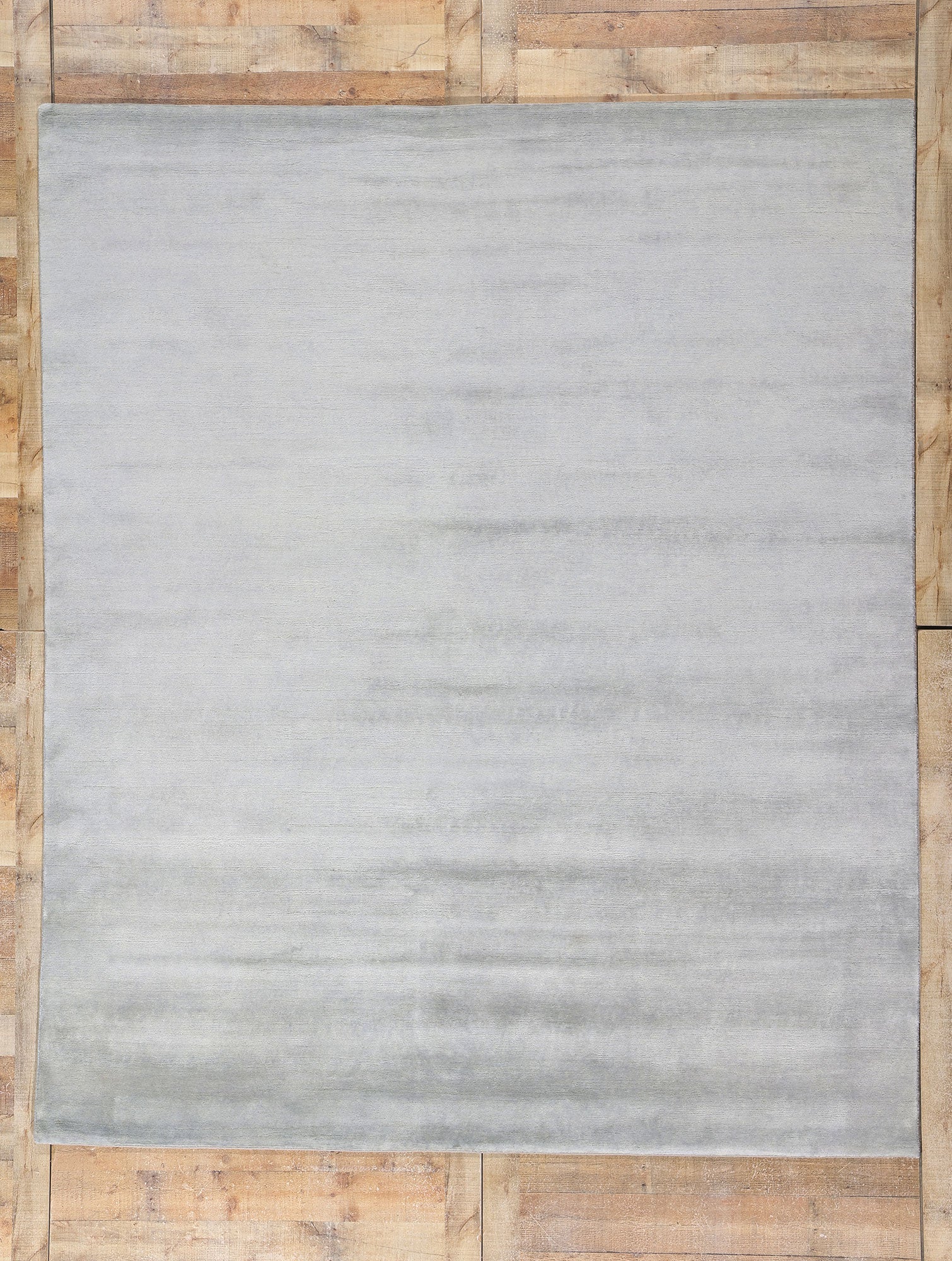 Introducing the Silver Mist Modern Gray Rug, a captivating blend of contemporary elegance and serene simplicity. Handcrafted with care in India, this luxurious area rug embodies the essence of modern sophistication. The soft, silver-gray hues gently transition across the surface, reminiscent of misty morning skies or the tranquil shimmer of moonlight on still waters. Its minimalist design, coupled with the delicate gradations in color, allows it to complement a wide range of interior aesthetics, from sleek and modern to cozy and organic.