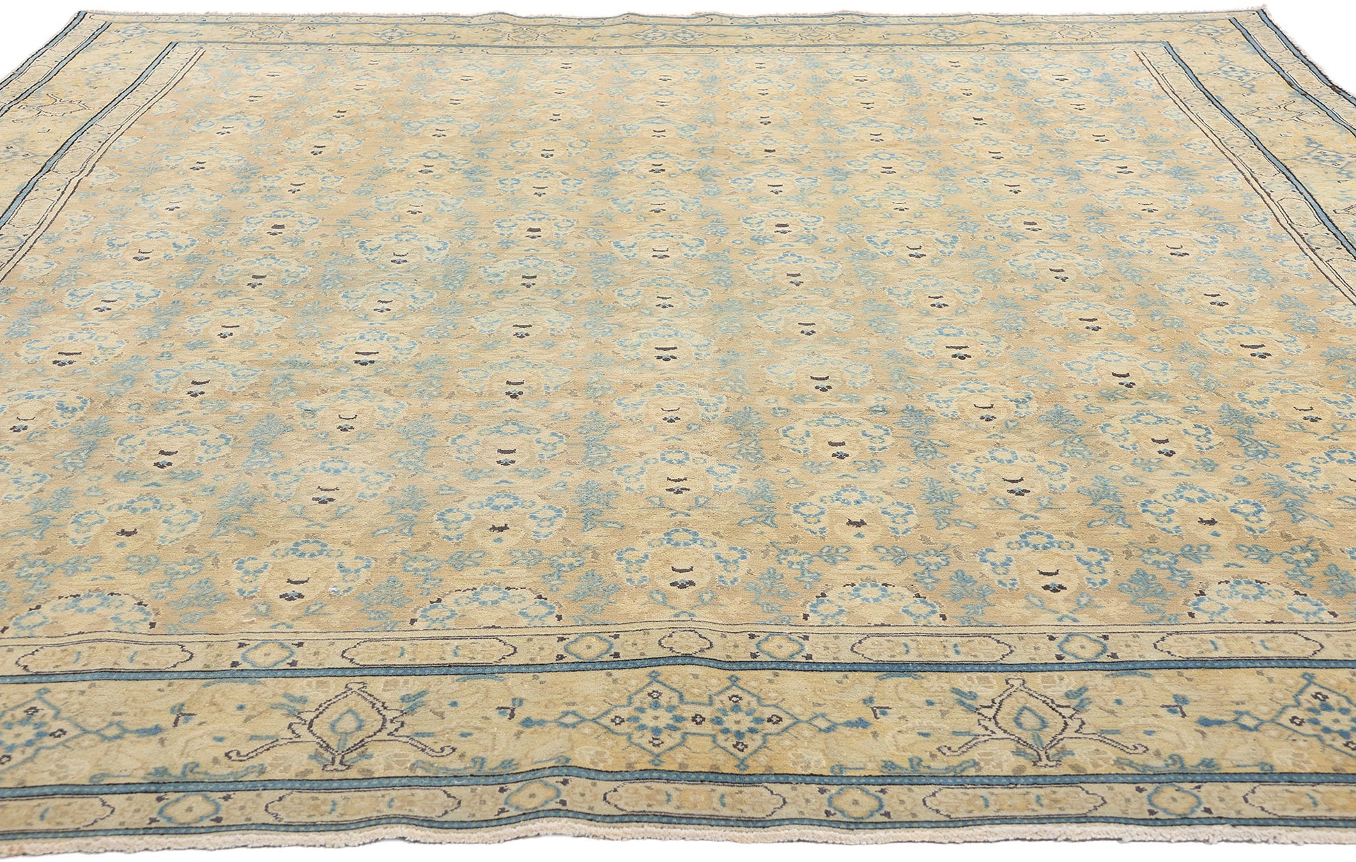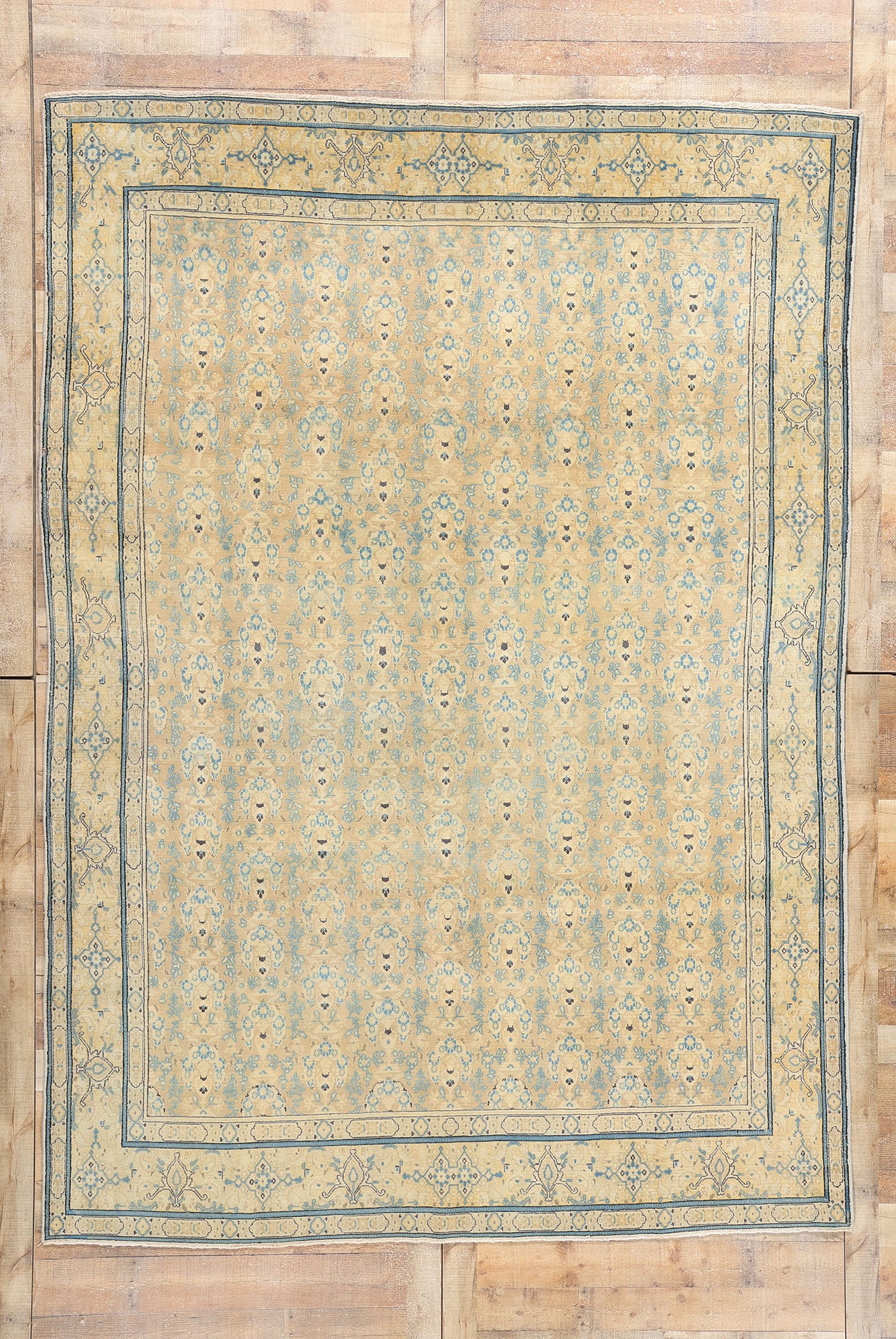 With its relaxed and luxurious aesthetic, this vintage Persian Mashhad rug exudes a quiet sophistication that never shouts but instead gently draws the eye. Its inherent charm lies in its subtlety, with its weathered tones and exquisite craftsmanship blending seamlessly into a variety of settings. Whether placed in a contemporary interior or a more traditional space, it brings a sense of history and artistry, creating an atmosphere of refined warmth and understated elegance. This woven wonder, is a testament to the enduring beauty of Persian design, offering a piece of history to treasure for generations to come.