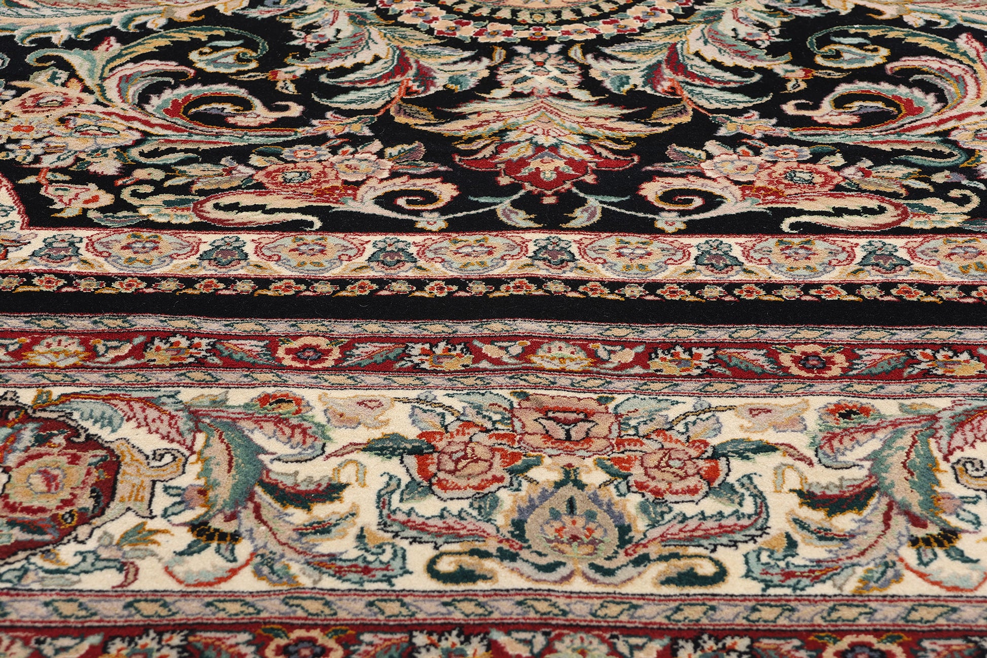 - Hand knotted wool. Hand knotted silk.
