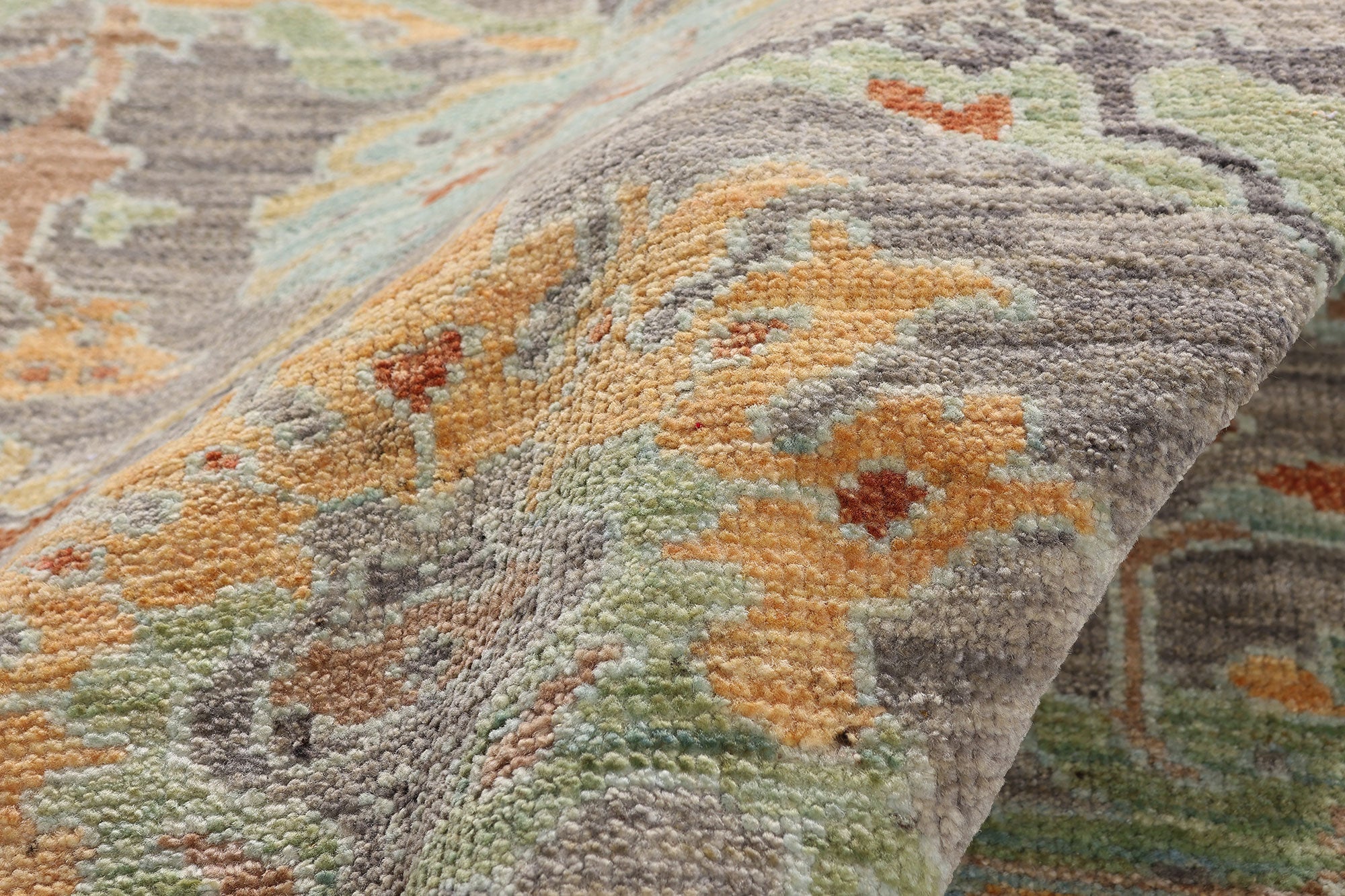 - Hand knotted wool.