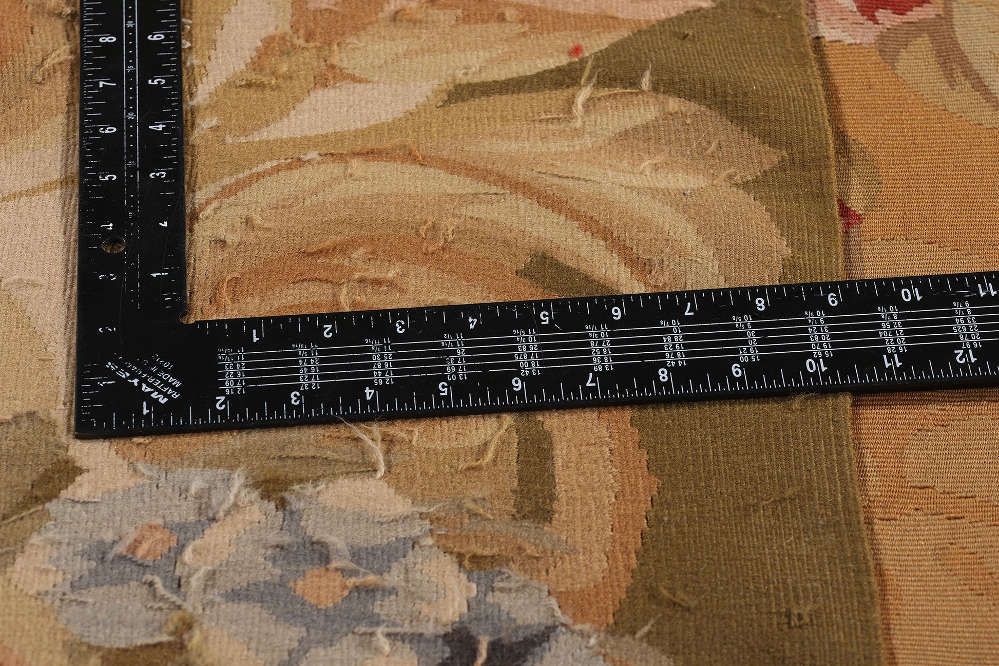 Bordering the central tableau is a sophisticated network of acanthus leaves and floral sprigs, which gracefully arc and intertwine, forming elegant swags that anchor the composition. This framing device not only enhances the visual depth but also exemplifies the Aubusson tradition of symmetry and ornamental richness. The border's creamy hues and gentle earth tones lend a soft, romantic aura to the rug, inviting one to step closer and admire its detailed craftsmanship.
