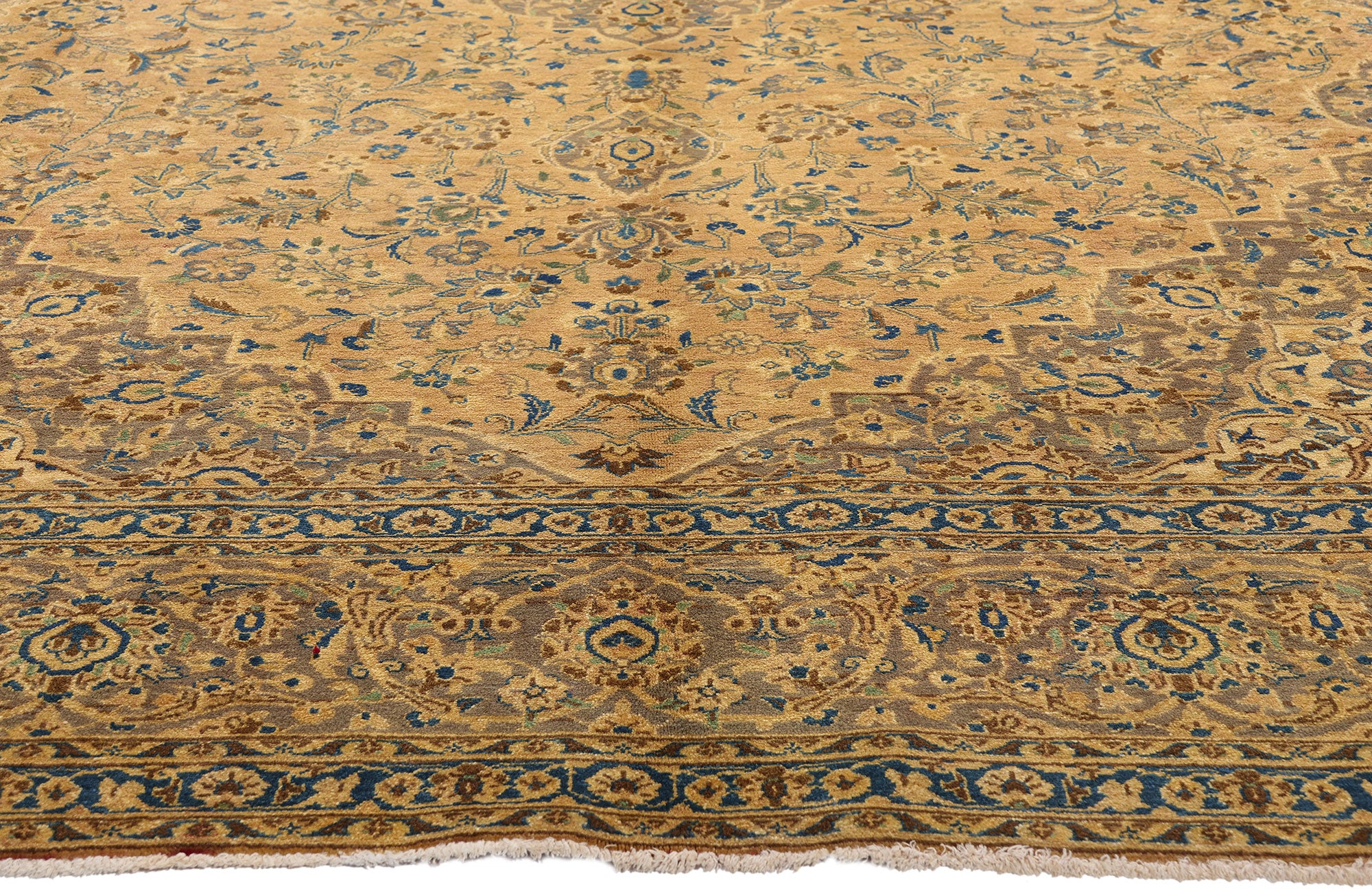 Unfurling across this exquisite work of art is a majestic allover botanical pattern: a symphony of blooming palmettes, lotus blossoms, peonies, tulips, lilies, hyacinth, rosettes, leafy tendrils, and delicate floral sprigs. Each exceptional motif has been rendered with a painter’s sensitivity and a calligrapher’s control, capturing the essence of eternal spring. The tri-toned cusped corner spandrels echo the language of the medallion, forming an elegant architectural balance and grounding the composition in a structured opulence that is signature to the finest Khorassan weavings.