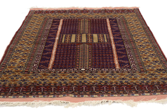 Turkmen rugs, woven by tribes such as Tekke, Ersari, Yomut, Saryk, and Salor, are renowned for their deep colors and fine, dense weaving. These Central Asian tribal rugs have the unique ability to infuse coziness, drama, and elegance into nearly any interior. Our selection of these antique and vintage carpets invites you to immerse yourself in the rich heritage of these pieces.