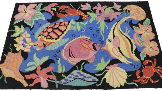 Rug makers living in the colonies near the Atlantic Ocean created antique hooked rugs presenting seascape and boating scenes common to the area. Originally designed to cover dirt or roughly hewn floors, American hooked rugs represent charming pieces of folk art fashioned out of frugality and clever ingenuity. They continue to be highly valued and cherished by rug collectors, interior designers, and historical societies.