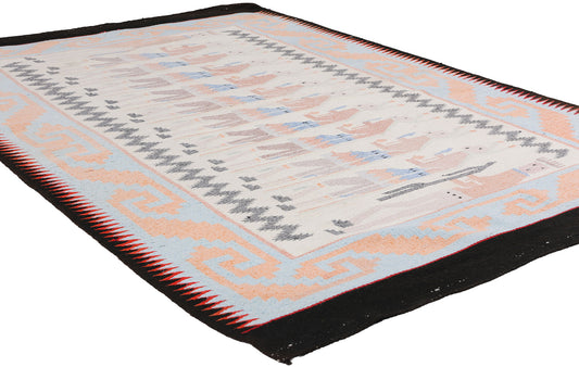 • Yeibichai Rugs: This pattern depicts the Nightway healing ceremony with dancers wearing sacred masks that represent the Holy People.