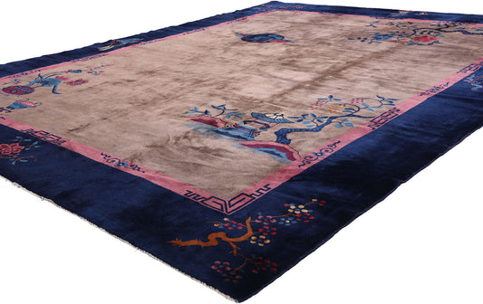 - Chinese Art Deco - These rugs were made in the early to mid-1900s and were designed with bold colors and patterns influenced by Western Art Deco style. They were mainly made for people in the West and have a fun, modern feel.