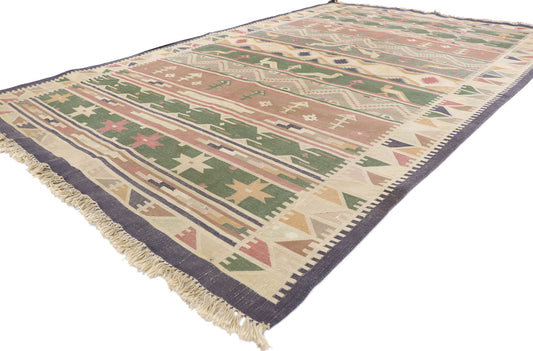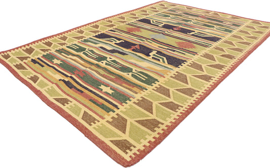 Older Dhurrie carpets tend to showcase simpler patterns with fewer colors. Among the colors featured were reds, blacks, whites, blues, and natural cotton hues. The 19th century ushered in a transformation in Dhurrie designs as synthetic aniline dyes opened the door to brighter palettes and more intricate patterns. This shift reflected changing tastes and broader markets while keeping the handwoven tradition intact. To distinguish their creations, craftsmen used vibrant colors and intricate patterns, resulting in unique and stunning pieces that grace modern homes today.