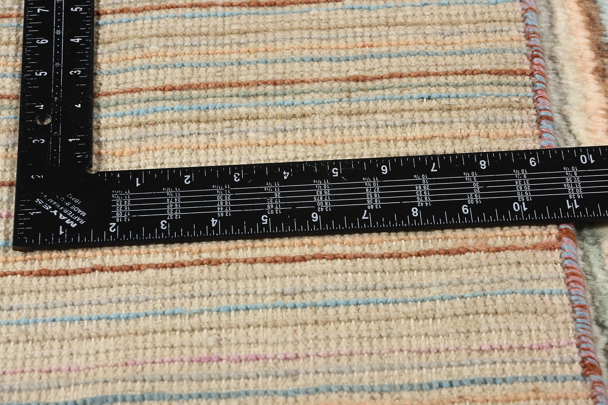 This hand knotted wool Desert Mirage Striped Modern Moroccan rug is a breathtaking blend of contemporary Moroccan style and timeless Indian artistry. The composition of this Moroccan area rug captures the subtle interplay of color and geometry, evoking the ever-shifting sands of a desert landscape. The delicate stripes that ripple across the surface are like the sun-kissed dunes at dawn, where the colors of the earth meet the sky in a harmonious dance. The soft, subdued palette of tans, blues, and light pinks reflects the natural beauty of the desert, creating an oasis of calm and serenity in any space.