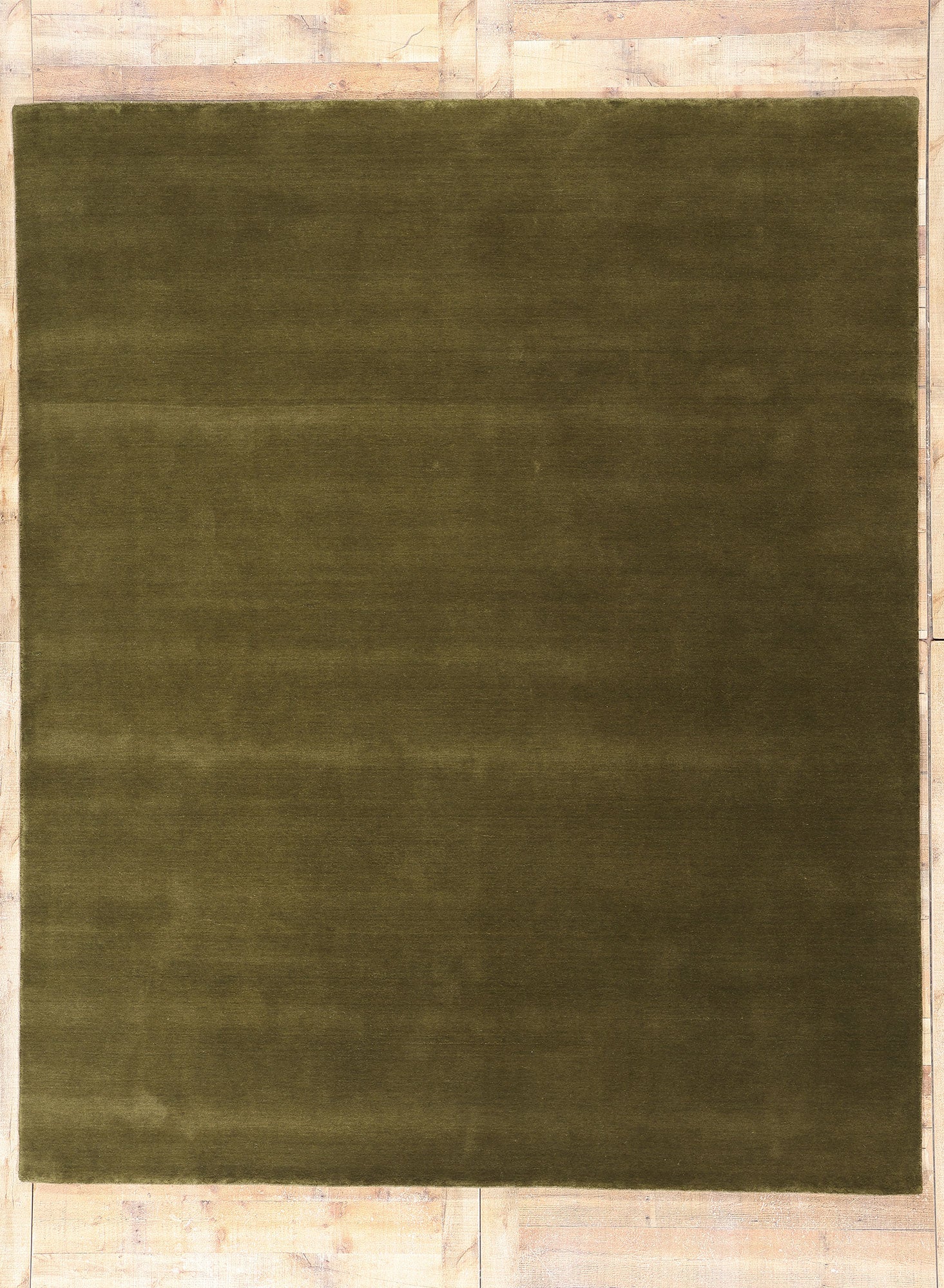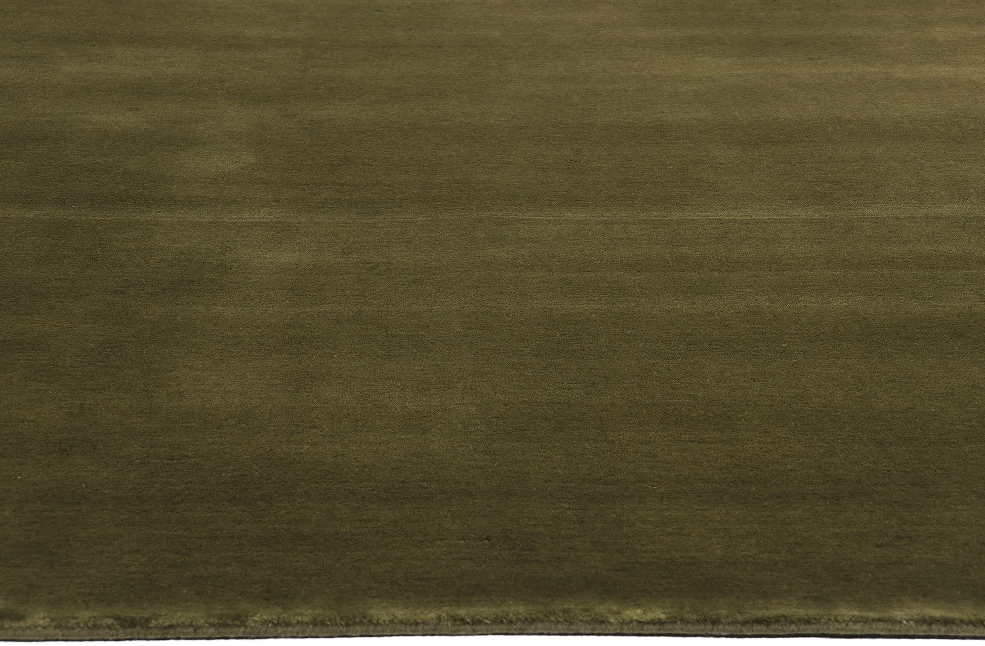 This Solid Olive Green Modern Area Rug perfectly marries biophilic design with an earthy, sophisticated aesthetic. Handcrafted with exquisite detail, its rich olive green color, interwoven with shades of Spanish moss, evokes the serenity of tranquil landscapes. The soft gradations and tonal variations across this modern Indian rug add depth and texture, capturing the essence of nature's subtle beauty.
