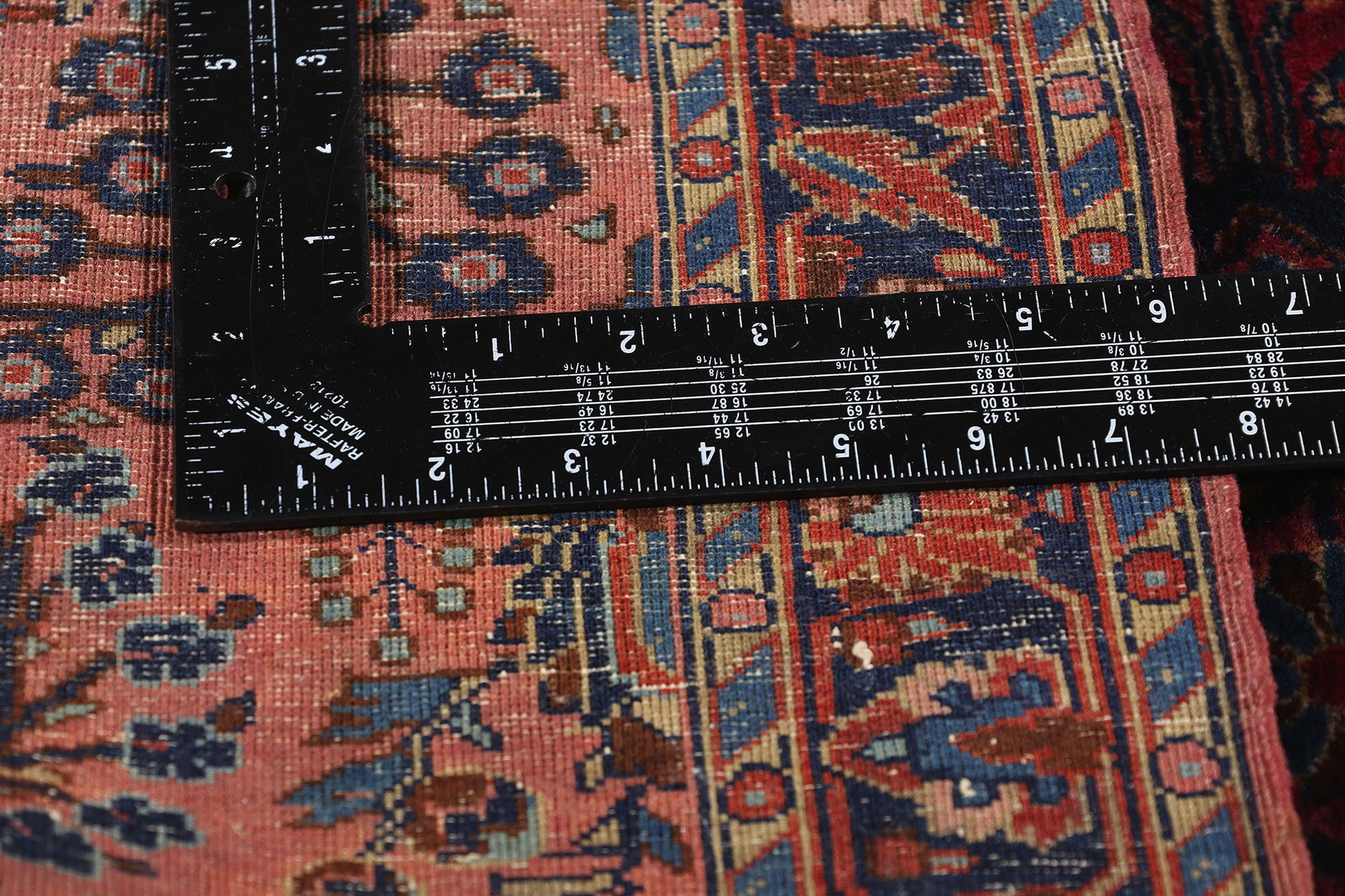 This hand-knotted wool antique Persian Sarouk rug is a mesmerizing display of the rich artistry and enduring craftsmanship that defines the Sarouk weaving tradition. Originating from the famed Sarouk region in central Iran, this small antique rug reflects the cultural heritage and skill of Persian weavers, celebrated for their intricate patterns and luxurious designs. The cranberry colored field serves as the foundation for a tableau of elegant botanical motifs, radiating timeless sophistication and charm.