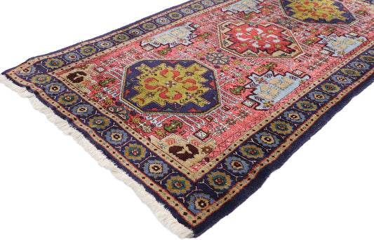 The most recognized pattern found on Ardabil rugs is the well-known Herati design - a diamond medallion and small fish throughout. Some modern weavers are incorporating bold geometric designs rather than the traditional Herati, and have included colors such as purple, turquoise, orange and green to the more traditional red, pink, ivory, and blue.