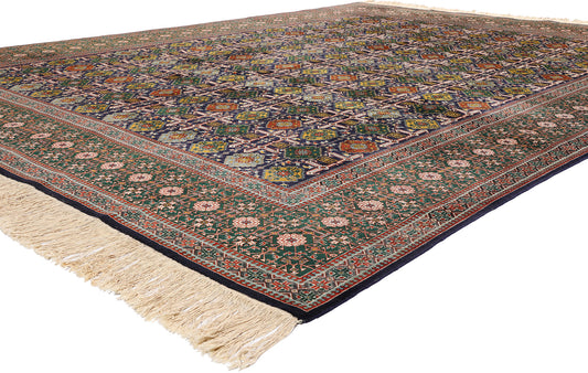 Persian Tabriz carpets are renowned for their intricate details, exceptional artistry, and culturally significant patterns. Some of the designs you can expect to see in our Tabriz rugs for sale include central medallions with corner spandrels, Herati or Mahi fish, Shah Abbas palmettes, pictorial elements, and hunting scenes.