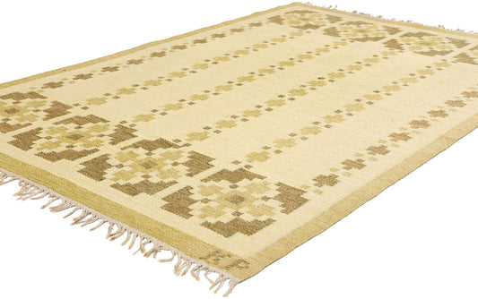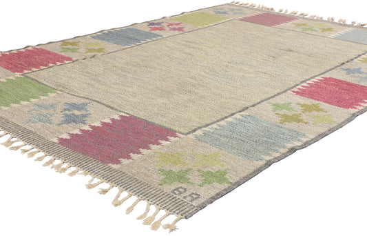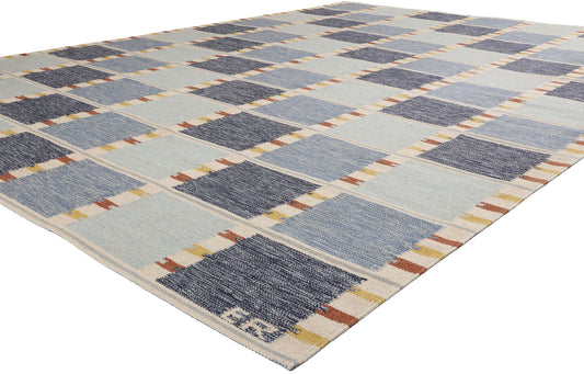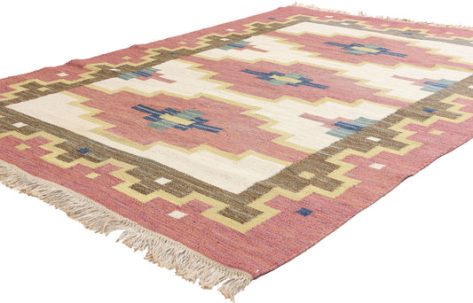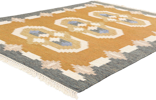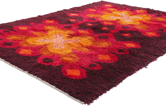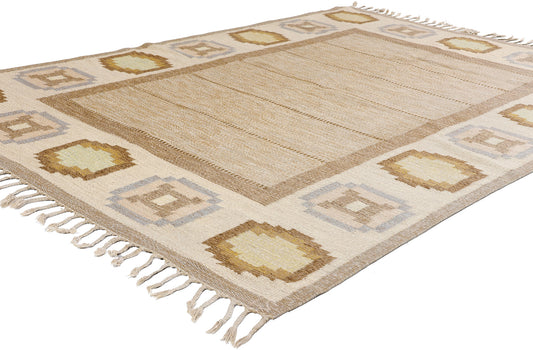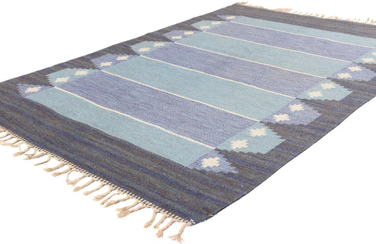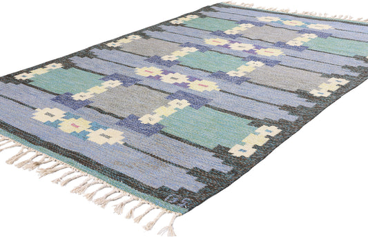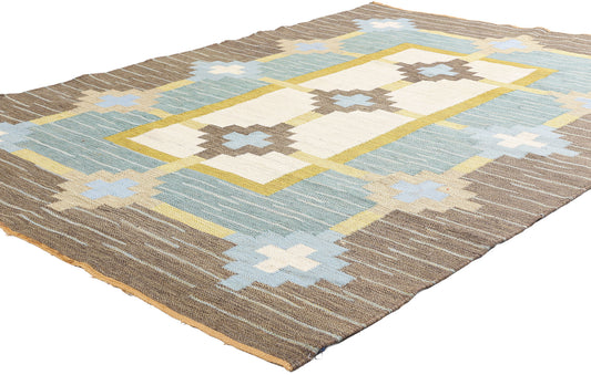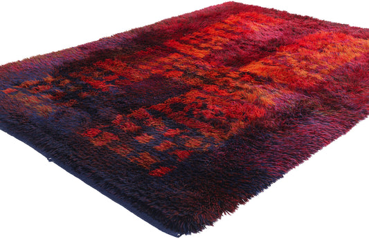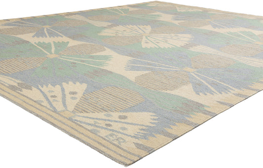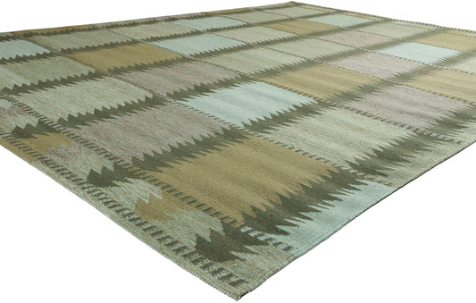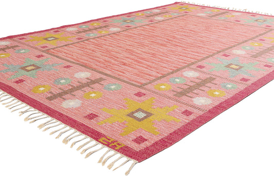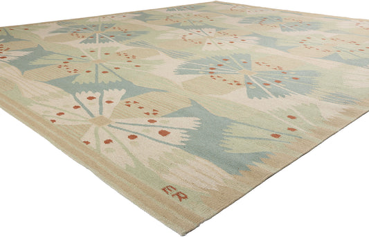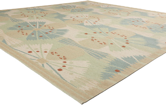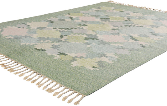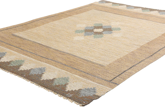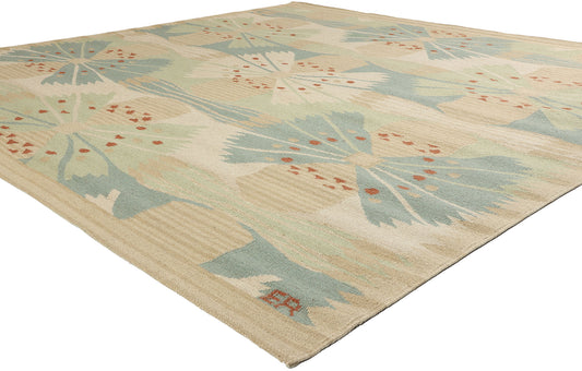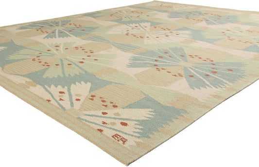Originating in Sweden, Denmark, and Finland, vintage Scandinavian carpets were woven to highlight both utility and artistry. From Röllakan (flatweave kilims) with geometric patterns, natural dyes, and lightweight versatility to Finnish Rya rugs featuring lush textures and thick, hand-knotted designs, Scandinavian weaving flourished in the 20th century. The Chinese rug inspiration gave way to distinctly Scandinavian designs, especially due to designers like Märta Måås-Fjetterström, who elevated Swedish weaving and motifs to global recognition.