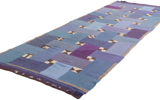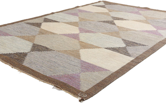 While many Scandinavian rugs for sale feature soft, muted color palettes with ivory, grey, blue, sage, and earthy neutrals, many also incorporate bold hues, such as the distinctive Falu red color. This signature shade comes from copper mines in Falun, Sweden, and is famous for its rich, bold crimson. Our Scandinavian rugs for sale also explore geometric and symmetrical motifs, like diamonds, stripes, and crosses, as well as the durable Röllakan flatweaving technique, and a unique balance that blends folk traditions with modern aesthetics. From antique Swedish rugs to vintage Rya carpets, Scandinavian pieces imbue a space with simplicity and refined elegance.